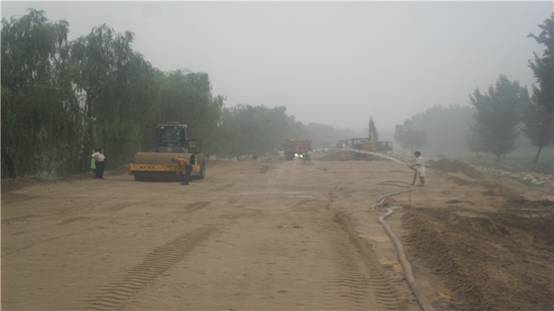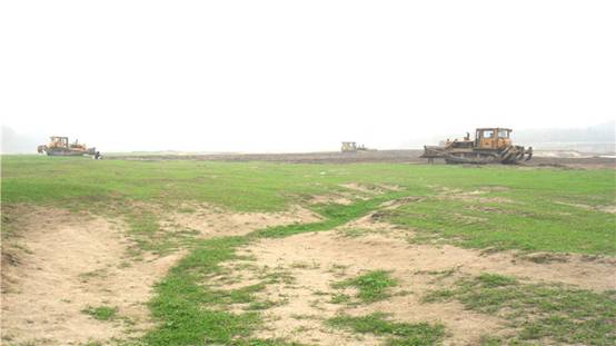 左堤加高:樁號ZD6+918~ZD9+235,填筑質量標準:粘性土壓實度≥92%,無粘性土相對密度≥0.65。填筑完成后進行麻網椰纖植生毯鋪設。
