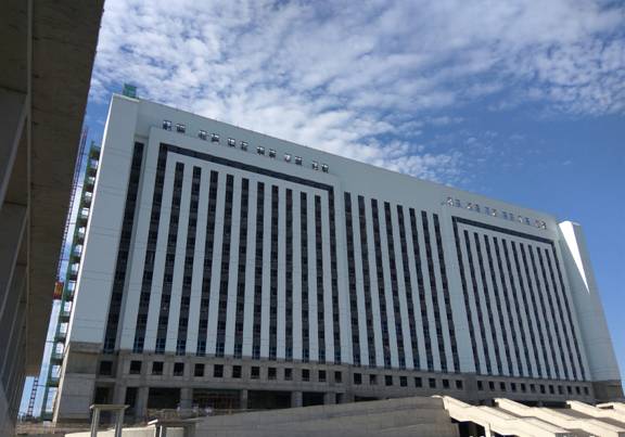 順義區行政中心項目是區級重點工程,建筑物占地面積約2.5萬平方米,總建筑面積約9萬平方米(其中:地上十四層,建筑面積約6萬平方米;地下兩層,建筑面積約3萬平方米)。由主樓、裙房、車庫組成:主樓十四層為運動中心,設有圖書室、工作餐廳等,其余各層均為辦公用房;裙房用于應急指揮中心、自行車庫和信息中心,為中間高三面低的坡屋面,上面設有一條八字形汽車坡道和一個室外大臺階通往主樓二層 南側主入口。汽車坡道旁為花池,設計為種植屋面做法;地下二層為人防指揮所,地下一層為坪站結合。該項目充分體現了綠色、低碳、節能的建設理念,為現代化辦公建筑的典范之作。