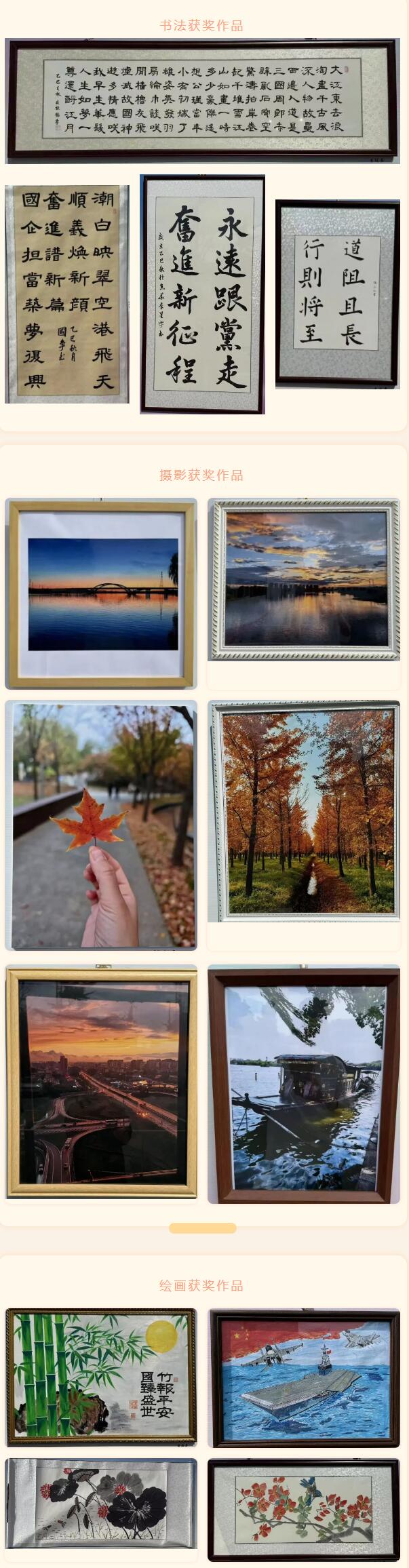活動現場布置井然有序,50余幅攝影、繪畫、書法作品集中展示,題材豐富、形式多樣。參展作品緊扣“賀華誕、繪盛世”主題,聚焦新時代發展成就,展現順義建投責任擔當,講述“青鋒英才奮斗故事”,兼具思想性與藝術性,充分展現了順義建投干部職工積極向上的精神風貌。展覽活動現場,參展人員認真觀展,依據評選規則進行投票,最終評選出一等獎3名、二等獎5名、三等獎6名。公司領導為獲獎作者頒發榮譽證書,對其優秀創作成果予以表彰。書法獲獎作品攝影獲獎作品