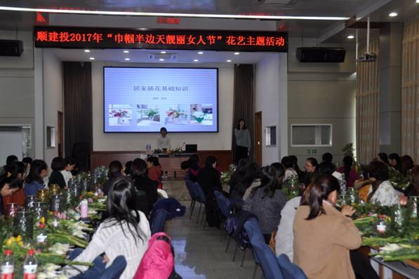2017年3月6日,順建投工會圍繞提高女職工藝術(shù)修養(yǎng),提升自身素質(zhì),做一名智慧女性、快樂女人的目標(biāo),在三八節(jié)來臨之際舉辦花藝主題活動,全公司共90多名女職工參加。