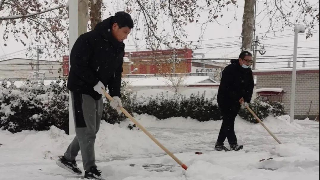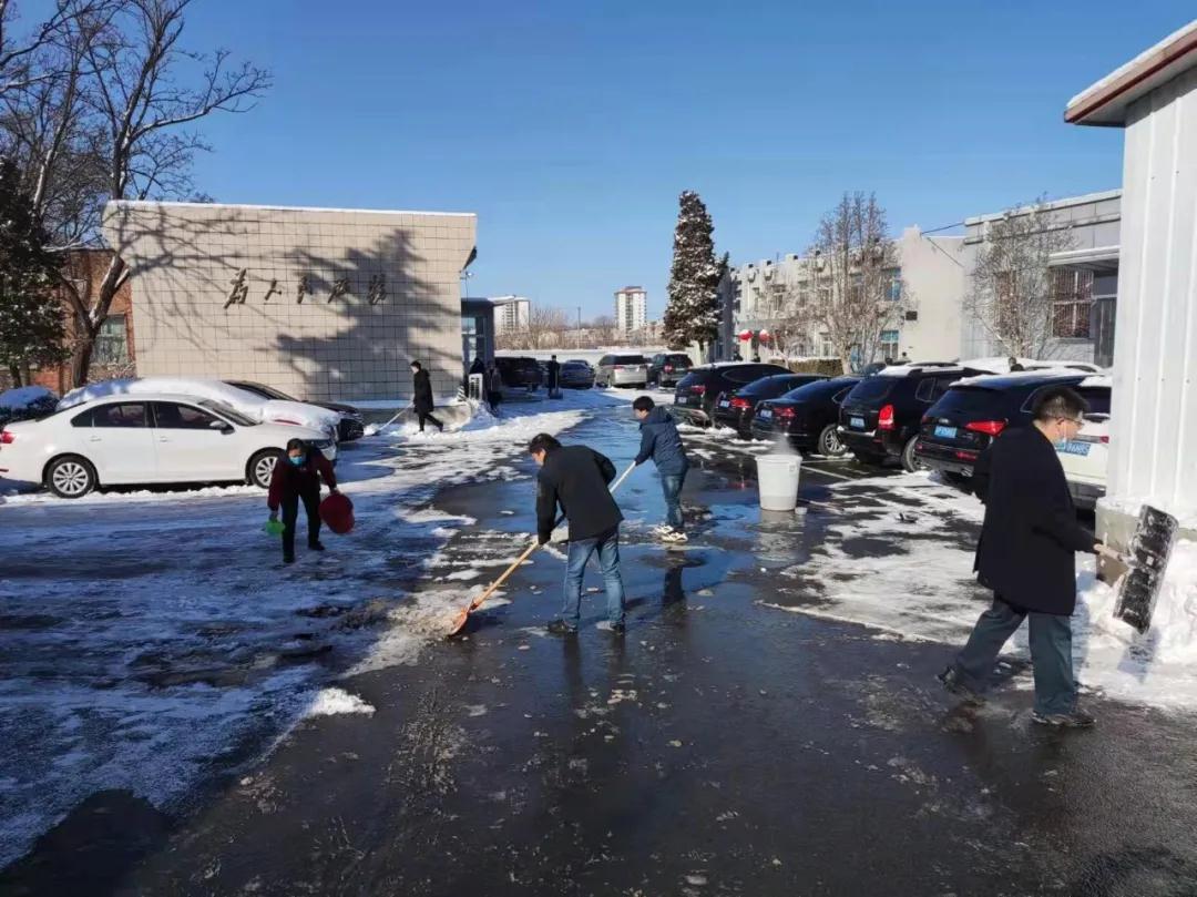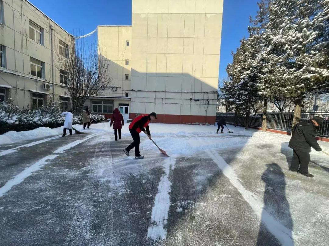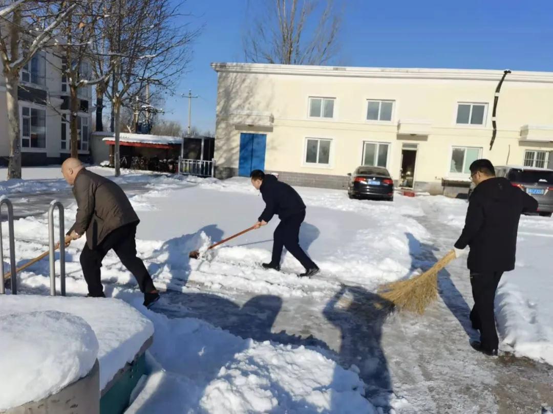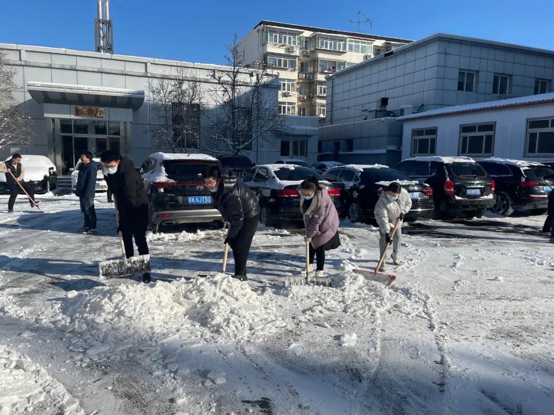 掃雪現(xiàn)場,黨員干部帶頭沖在最前面,不畏嚴寒,大家齊心協(xié)力,配合默契。經(jīng)過大家的共同努力,辦公場所及周邊道路的積雪得到了清除,職工道路交通出行安全得到了保障。