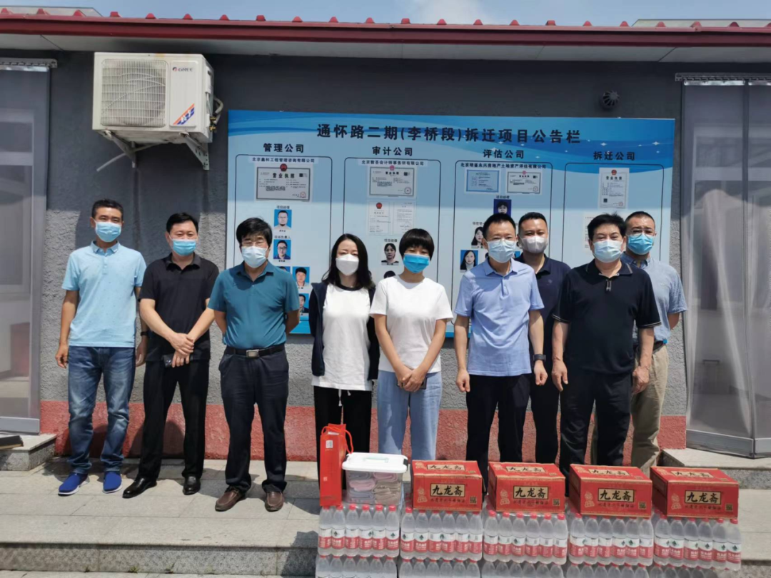 順義建投黨委書記、董事長劉福海,黨委副書記、經理姚仕松,黨委副書記胡代安,黨委委員、副經理張海龍,黨委委員、工會主席岳陽,副總工程師王力軍,帶隊先后到“順義區馬坡鎮西豐樂村棚戶區改造土地開發項目”、“順義區木林水廠建設工程”、“通懷路二期(李橋段)拆遷”等項目施工現場,親切看望和慰問了堅守崗位的現場工作人員。同時,對施工現場安全、勞動保護落實情況進行檢查,確保一線職工合法權益。