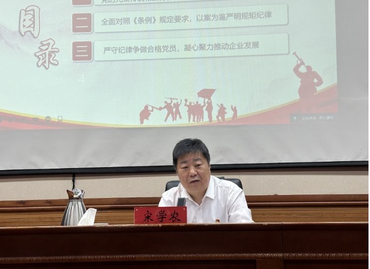 最后,宋學農同志對各級黨組織和全體黨員提出具體要求。一是加強黨紀學習教育,做好學紀、知紀、明紀、守紀。二是增強黨員責任意識,以身作則爭當先鋒模范。三是壓實管黨治黨主體責任,為公司高質量發展保駕護航。