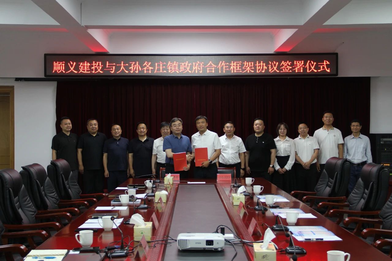 5月29日,順義建投與大孫各莊鎮舉行服務合作框架協議簽約儀式。公司黨委書記、董事長宋學農,黨委副書記、經理李建軍,副經理孫鳳閣;大孫各莊鎮黨委書記李志剛,黨委副書記、鎮長王艾清,副鎮長方磊參加。本次戰略合作續簽,是在過去合作基礎上的深化與拓展,是雙方攜手共進、共謀發展的新起點。